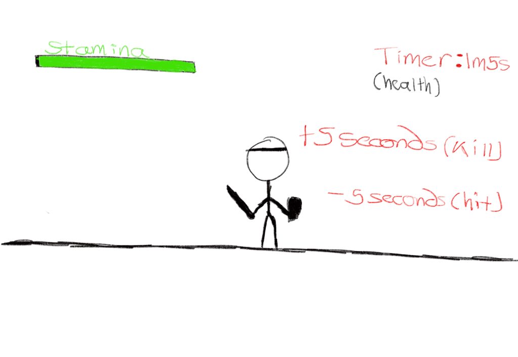 After doing our presentation on how we were going to make the game originally, we decided to make some changes. The player will now have a timer as health, this will naturally tick down but will deplete by 5 seconds when they get it and will go up by 5 seconds when they defeat an enemy. They will also have things they can interact with in the environment. We decided this as we thought it would work better than the last idea ands would just be a lot more unique. I also missed out on some concept ideas and research Adam did at the start of the year, however it did not hinder the project as I was here for the next stage of planning.