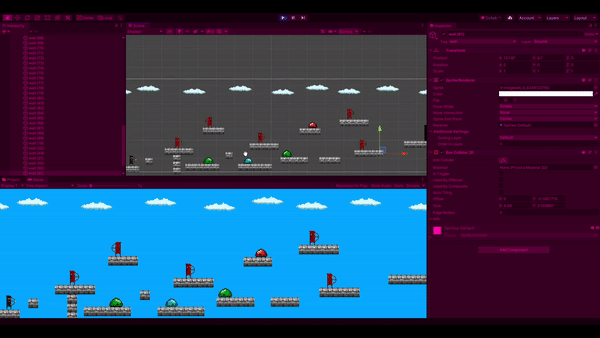 I then tested a script to have the enemies move back and forth on their own platform. (first section of the script and final few lines below it).