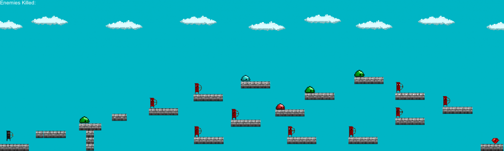 I then removed the tester blocks an put in my own to create the castle wall design i wanted for the first level. I then put in my enemies, and then tested it just to make sure the enemies died and everything worked how it should, which it did.