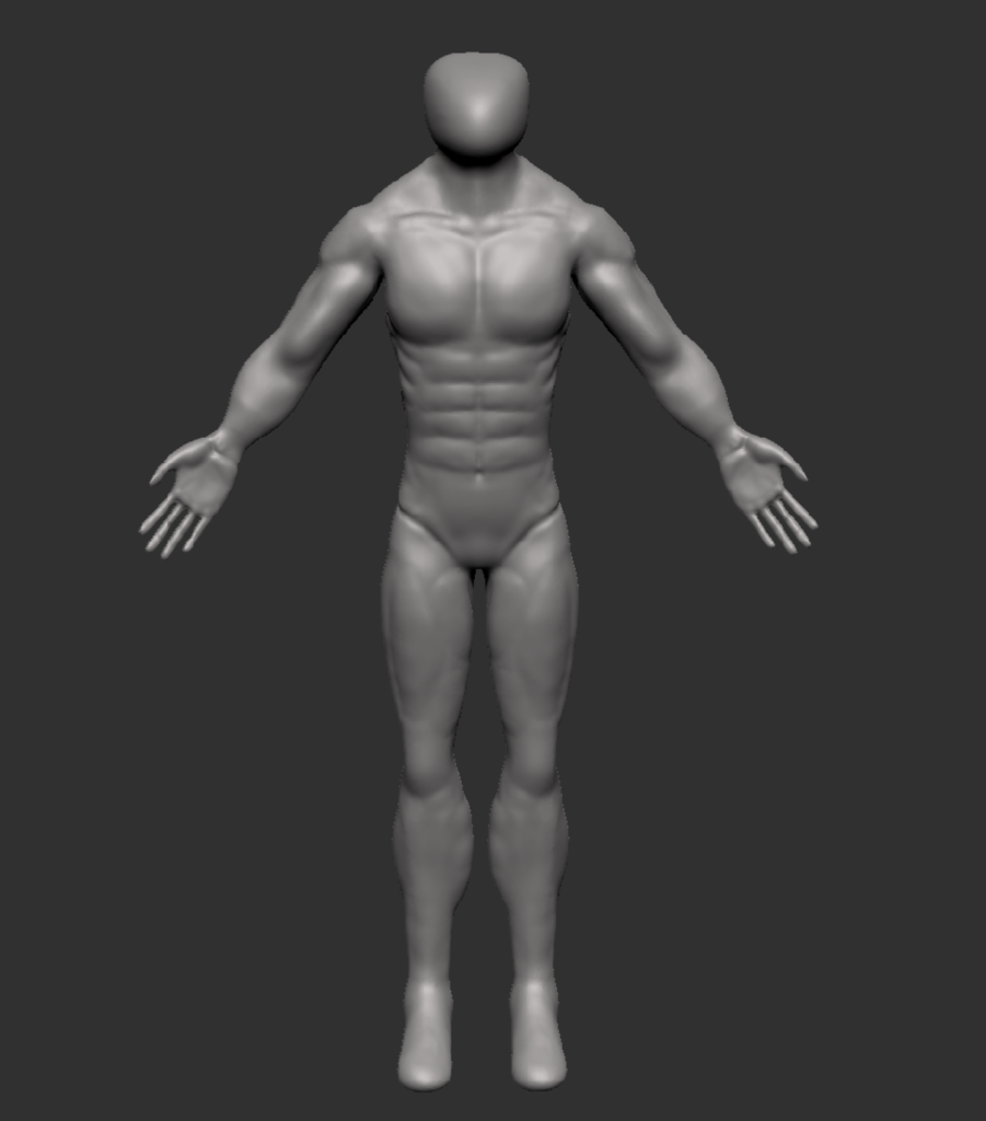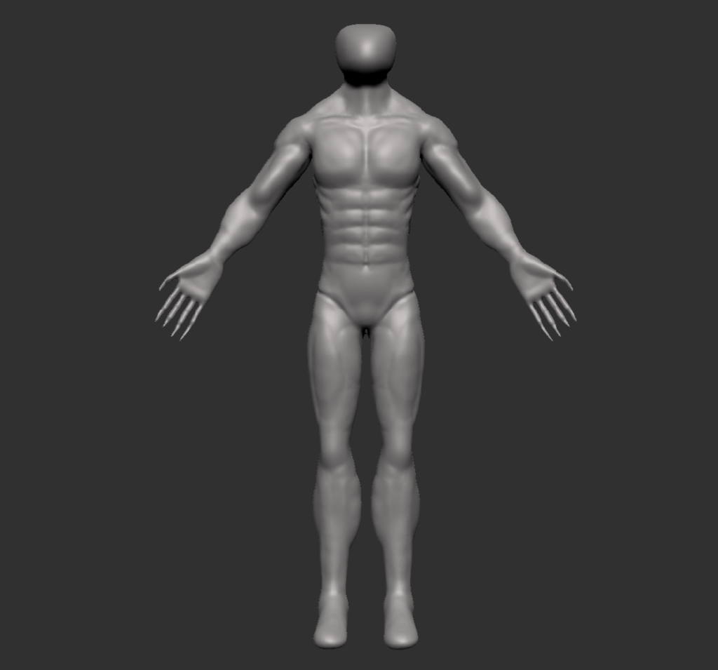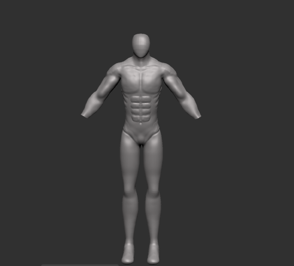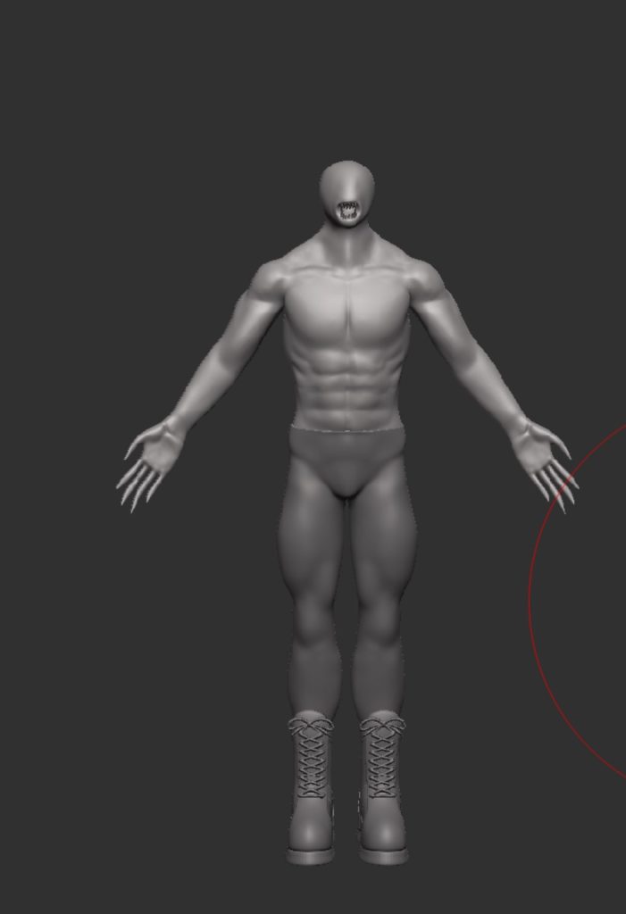 To start my first character I started with some basic sculpting to get the shape of the body. I constantly made adjustments to make sure it looks how I’m wanting it to look and how my references look too. This is when i started experimenting with muscle. Since I haven’t sculpted muscles before there were lots of changes and adjustments made as I wasn’t happy with it. The center image and the one on the right is the first attempt at adding muscle to the characters body. The tools i used to do this are the clay buildup brush, move brush, smooth brush, dam standard brush, and Inflate brush, these allowed me to shape and define each muscle shown.