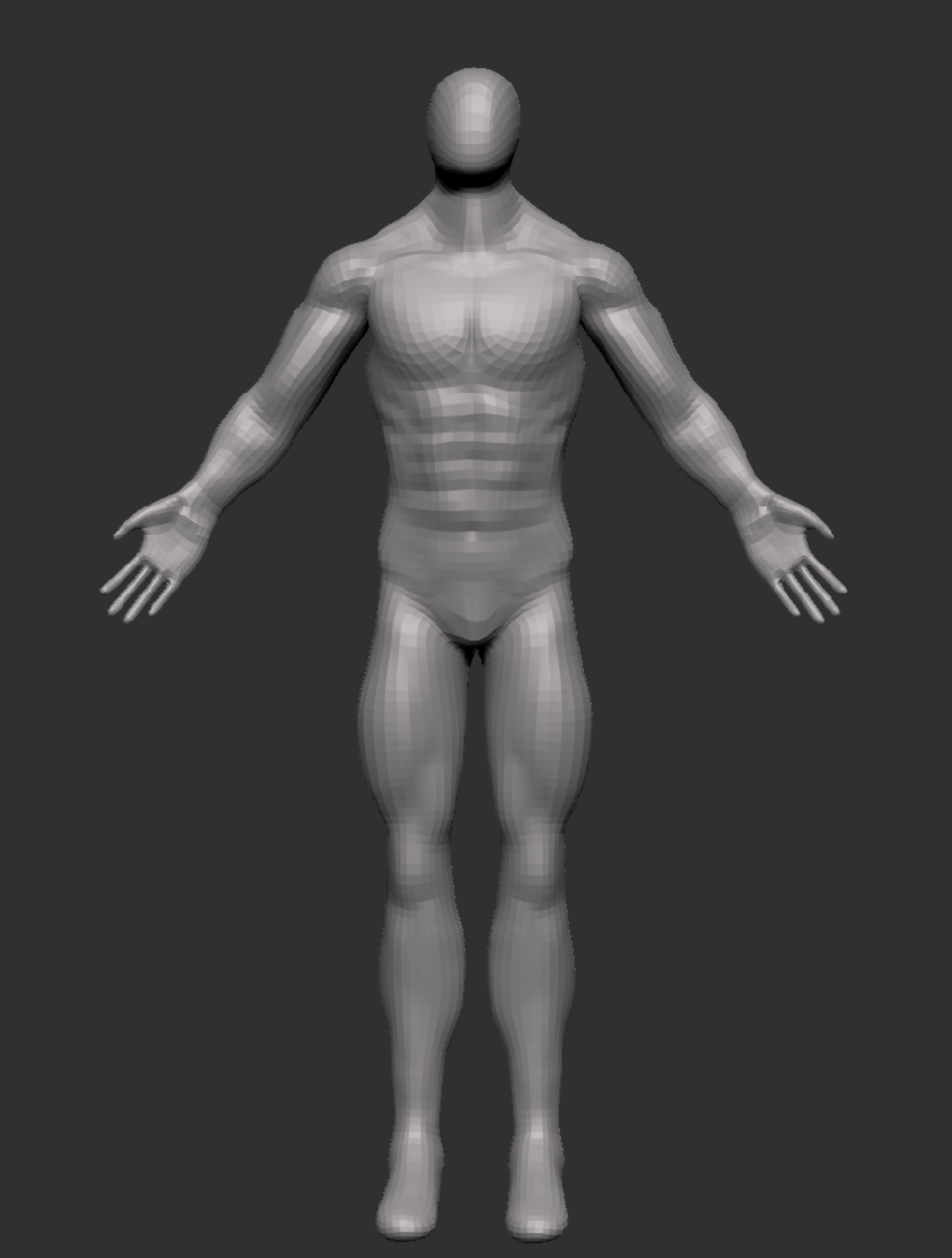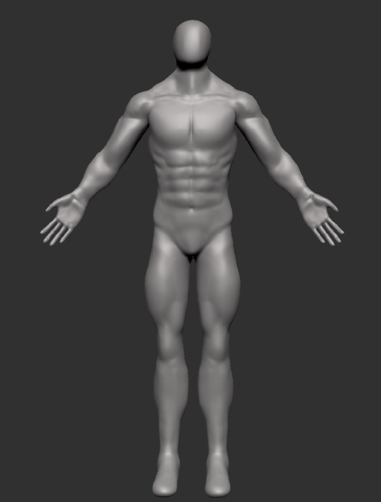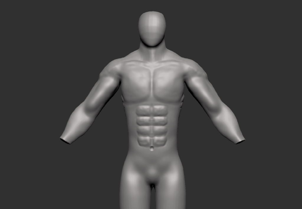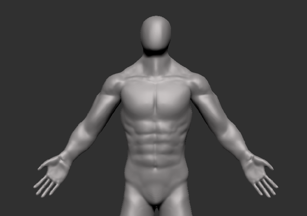 To start my first character I started with some basic sculpting to get the shape of the body. I constantly made adjustments to make sure it looks how I’m wanting it to look and how my references look too. This is when i started experimenting with muscle. Since I haven’t sculpted muscles before there were lots of changes and adjustments made as I wasn’t happy with it. The center image and the one on the right is the first attempt at adding muscle to the characters body. The tools i used to do this are the clay buildup brush, move brush, smooth brush, dam standard brush, and Inflate brush, these allowed me to shape and define each muscle shown.