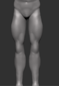 When I first started adding the muscles I struggled with making them look real and they started to look drawn on and more like a toy soldier than a person (figure 1), so I had to go back and look at my reference images and make sure I really pay attention to how they all fit into the arms and torso, making adjustments using the move brush, dam standard brush and smooth brush which made it look a lot more like a person (Figure 6). This was the same for the legs, so using the reference images above (figure 5) I was able to create the shape of the quads.