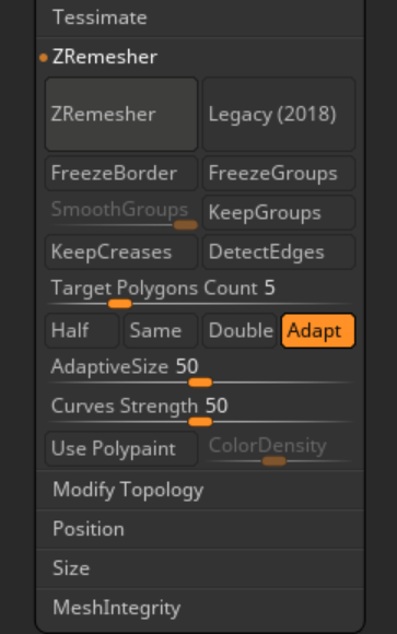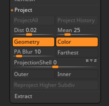 After making these changes i decided the polycount was quite high and wanted to have sub divisions to work with, so i used Zremesher selected the point in my history i was at. I then sub divided before using the project tool, i then repeated this a couple more times to make sure i had the detail from before but with lower polys.