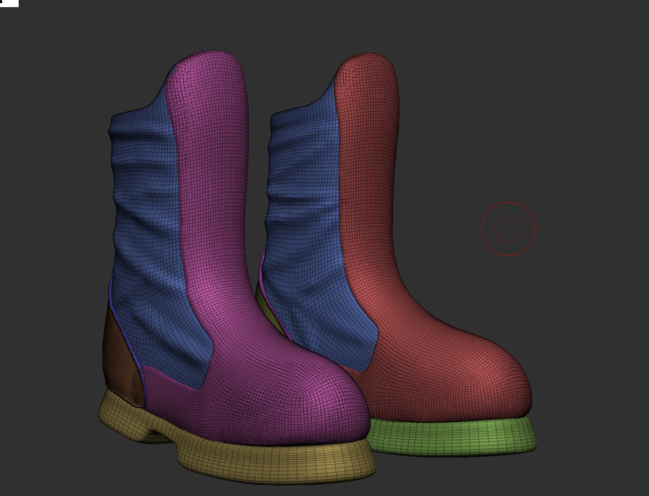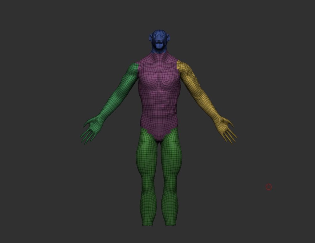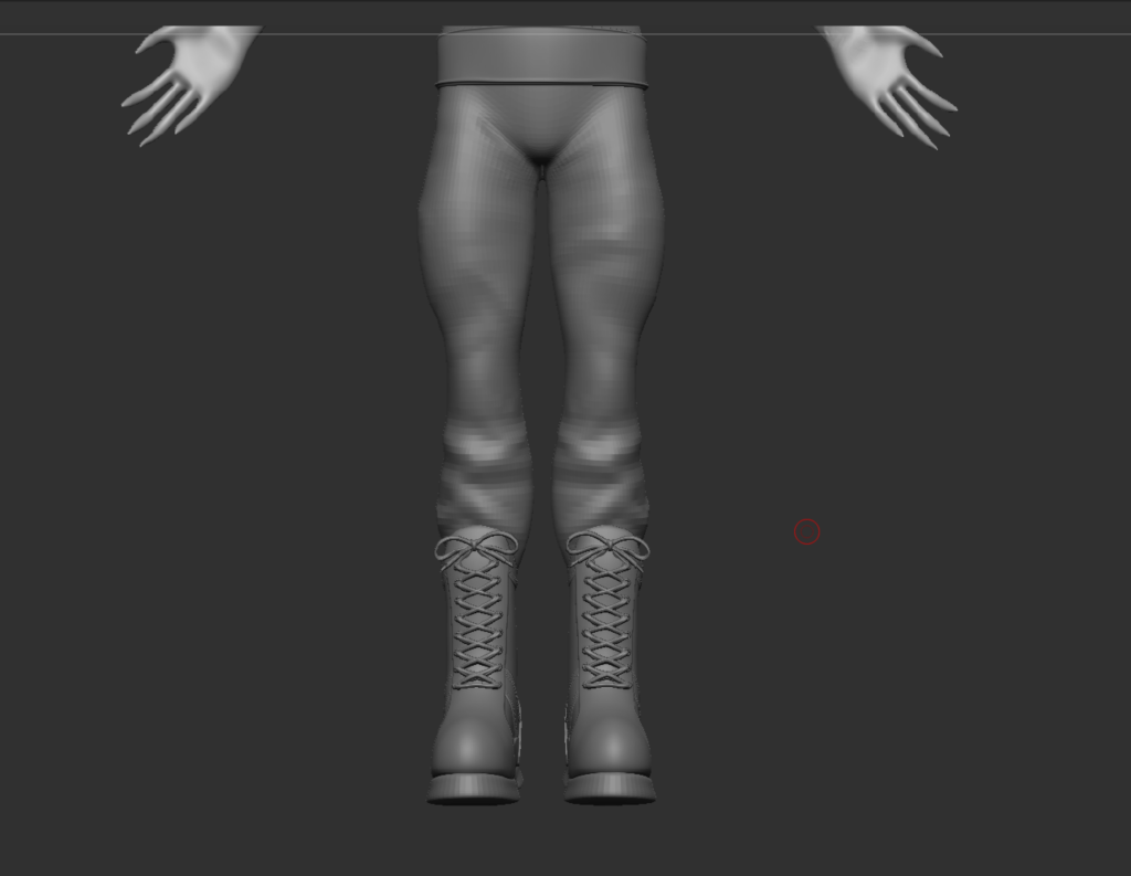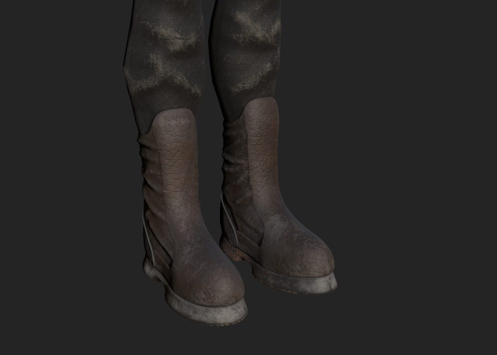 I’ve made a simple block out for the trousers which was done by masking the legs and then extracting the mask. I then took the boots I made for my other character (the soldier) and made scale adjustments so they would fit to the leg of this character.