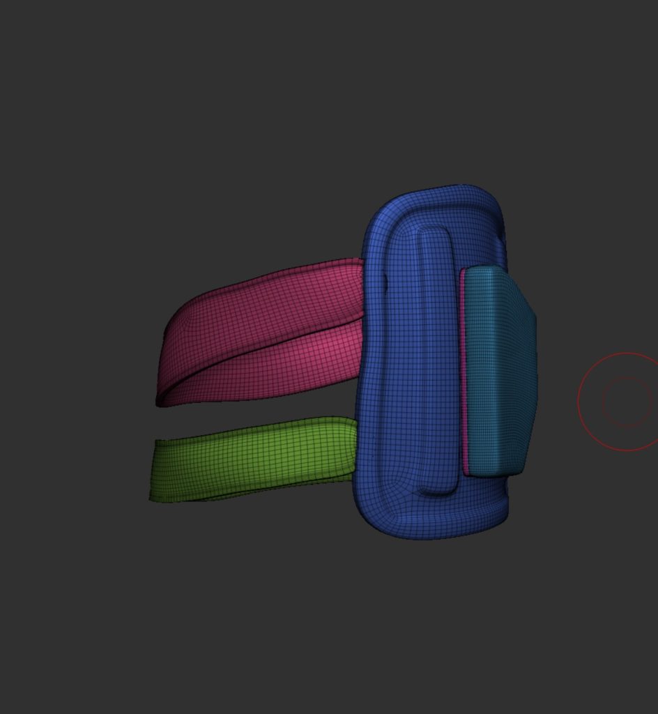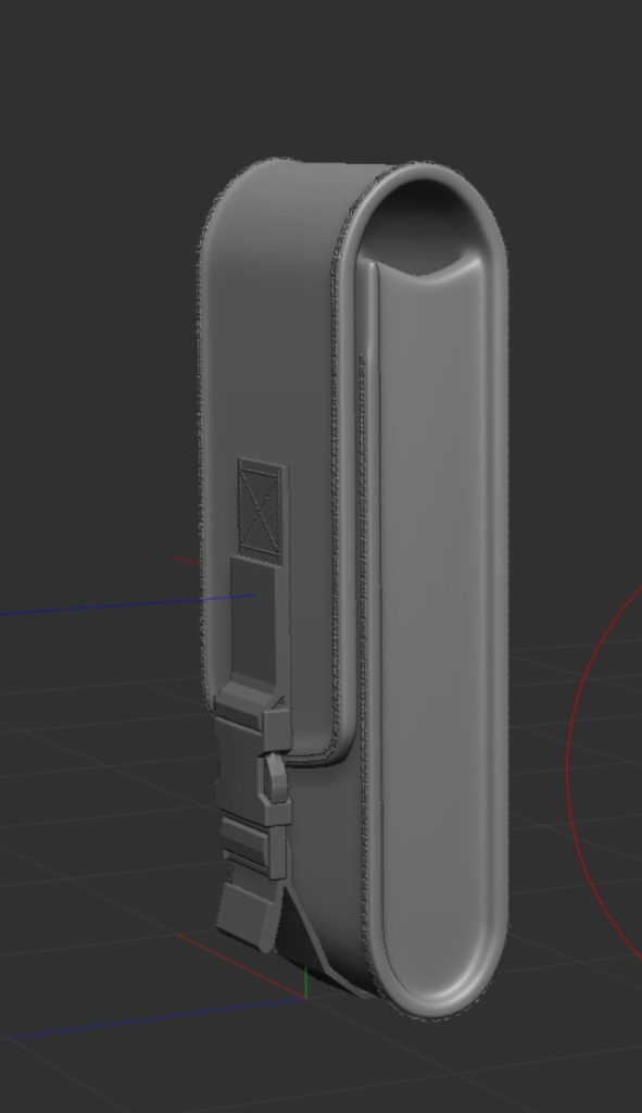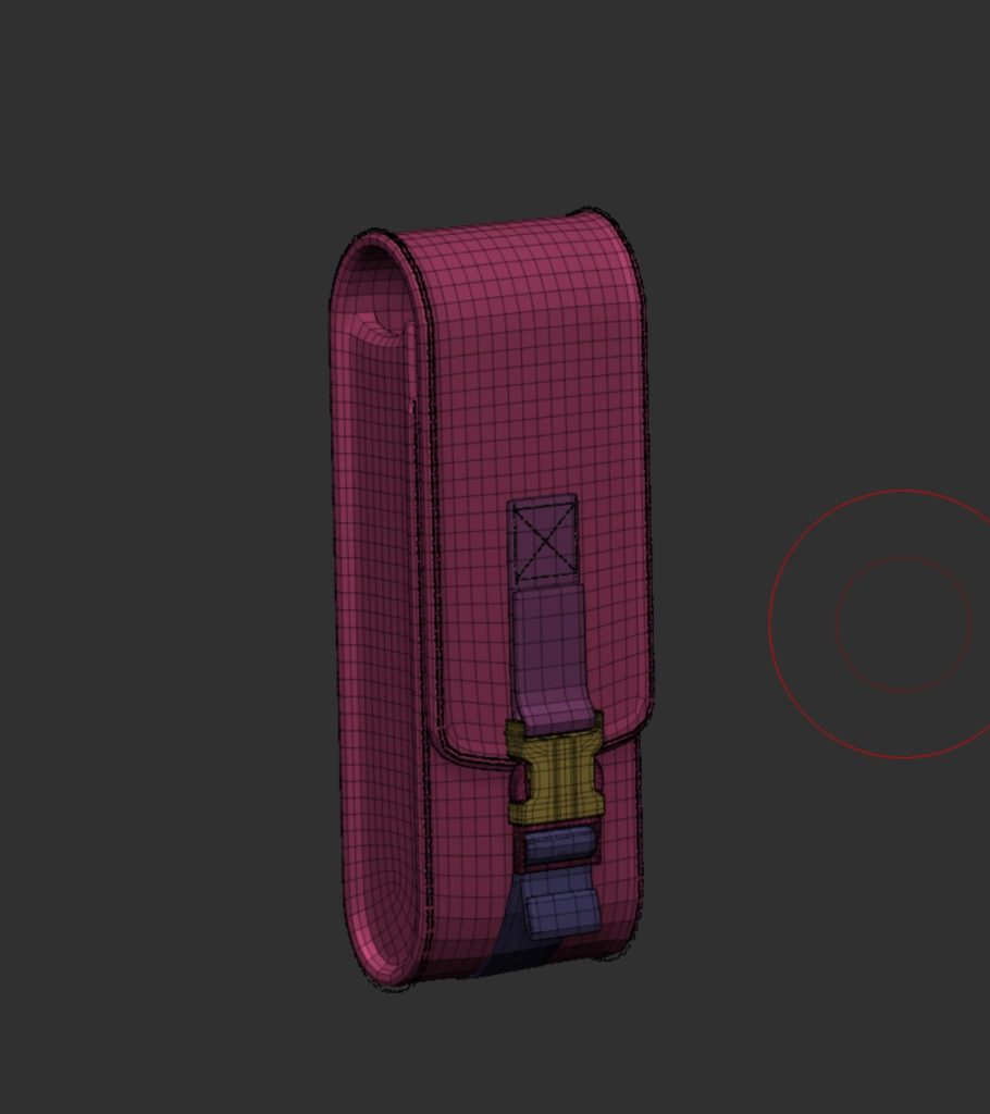 To finish off the mesh was duplicated before having the dynamic subdiv applied, and then the smaller details etc. were added. For example the stiches around the outer edge and the the clip that holds the pouch closed. Both of those are free IMM brushes and will be linked within the reference list.