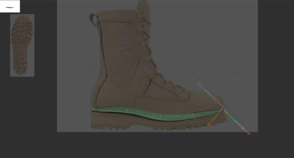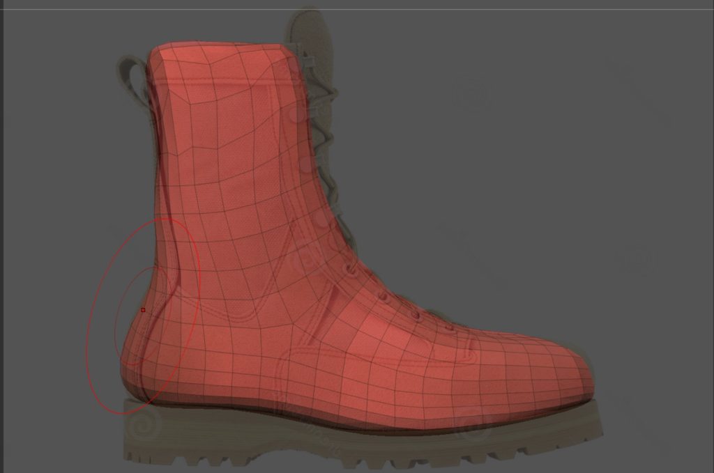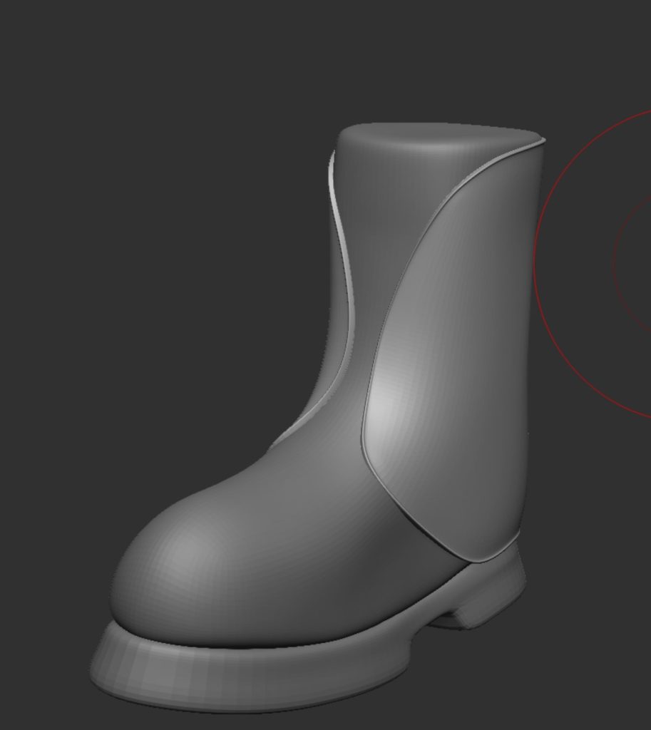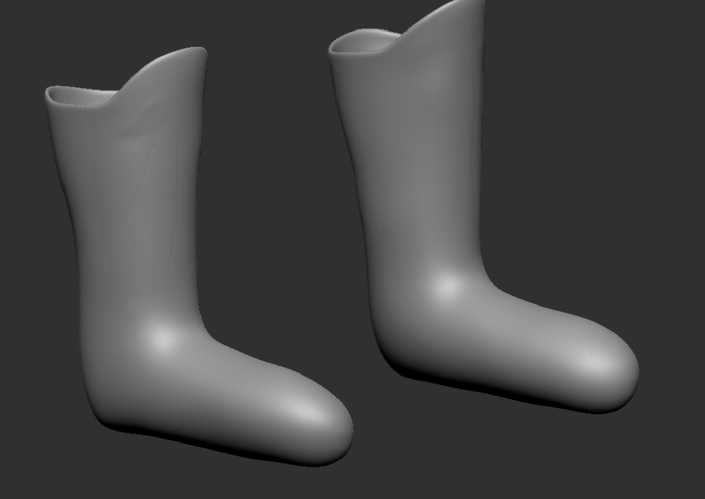 Using the move brush with back face masking turned on you are able to move the top geometry on its own, allowing you to fill out the boot and follow the shape of the spotlight image, once i was happy with it I then used Zremesher to sort the geometry out as it gets quite messy with pully and smoothing it.