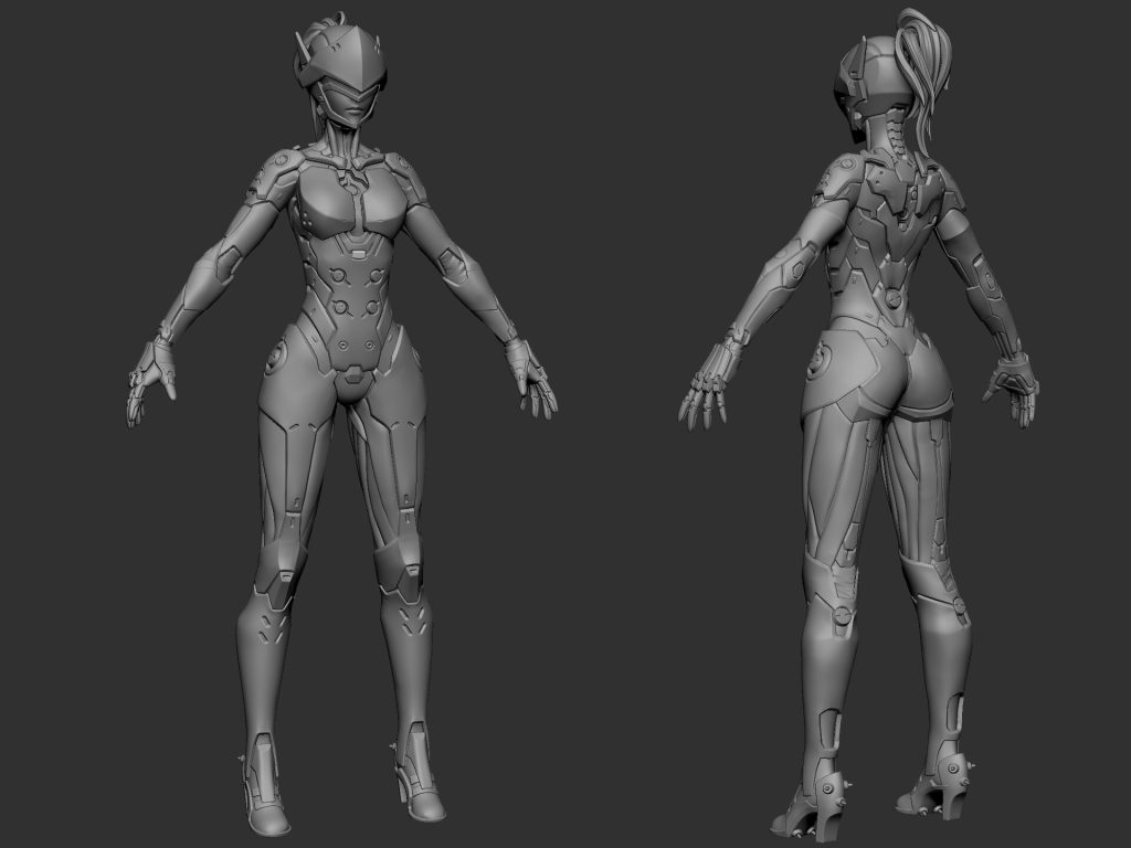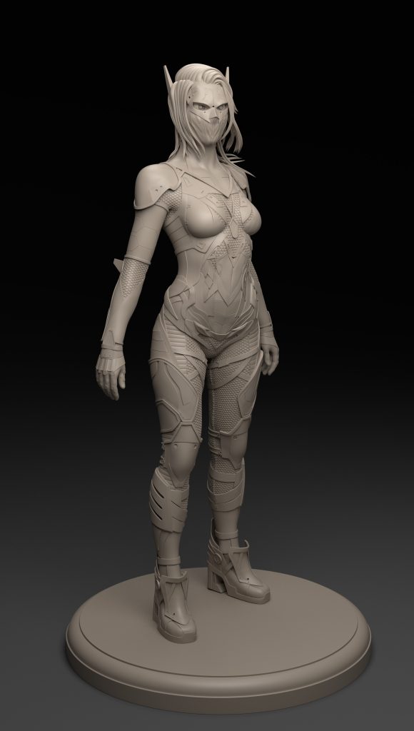 Looking at this finished piece of work and all the planning that went into it I am very pleased with how it turned out. It is unfortunate that the hair was something I failed to do however, this is something I plan to return to in the future and do for this character. I feel that this character is a very good base for me to build on as a long term goal of mine is to be able to fully rig and import her into unreal engine. Throughout this project I have been able to expand my knowledge of character design, and develop my skills within multiple pieces of software. One area that will be key for me to improve on is re topology as its a key part of the pipeline. Instead, I had to use the auto re topology tools within Zbrush to do it as I had not done re topology before.