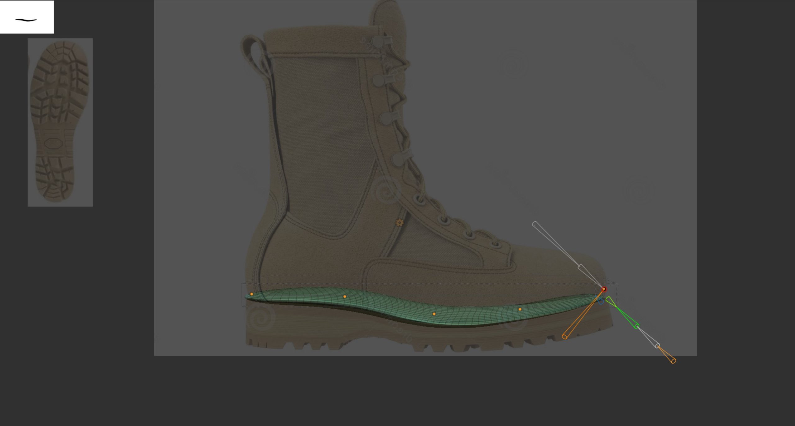 The thicker base was then made by masking the base and extruding it, I then smoothed it before using Zmodeler to extrude certain faces to create the part near the heel and the front of the foot, making sure to leave a space to create a arch similar to the one in the image.