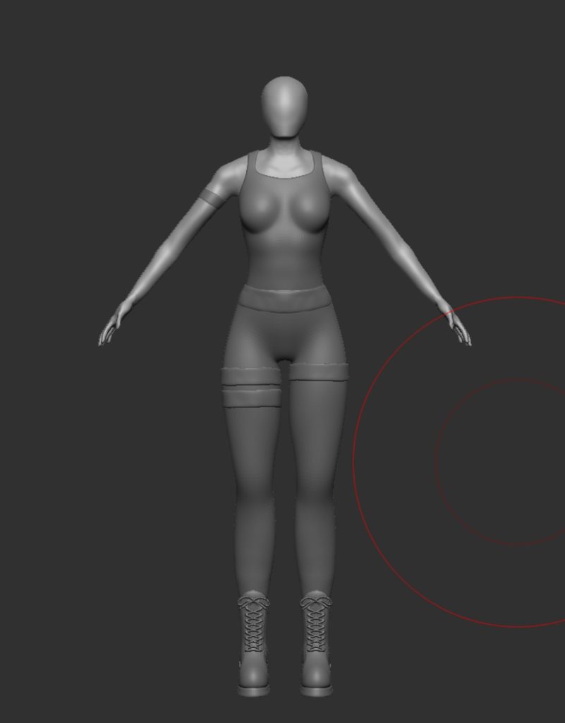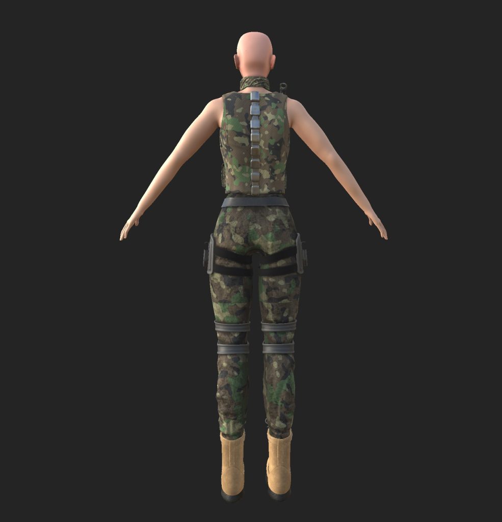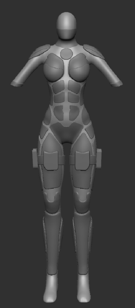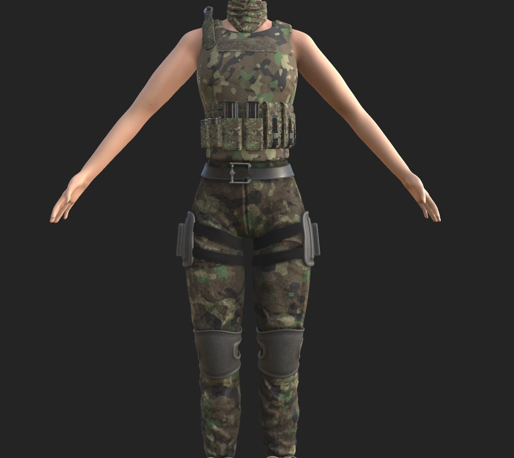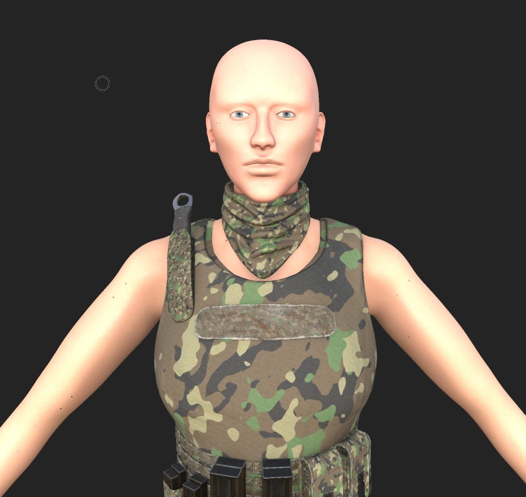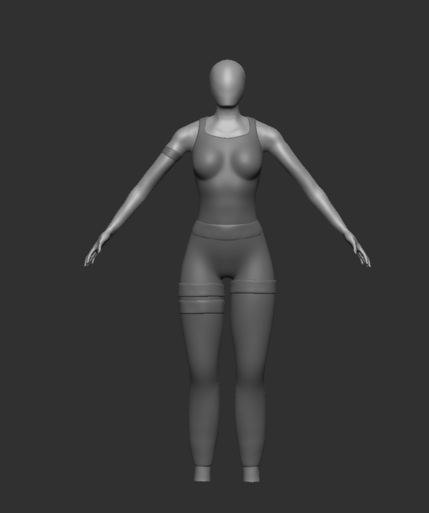 I started off with the vest making sure there was no clipping and the space for the arms was correct. I then added the molle loop attachments which is where the magazine holders and pouches would attach. I followed this up by making cloth creases along the legs of the trousers based on references I was using. The final couple things were the gun holders and the kneepads, these did not take long to make using simple shapes and the Zmoddler tool, however I had a slight issue initially with getting the right shape of the pistol holder however i figured it out in the end by watching a few videos on youtube. I then finished it off by making a simple belt that could potentially be used to carry things.