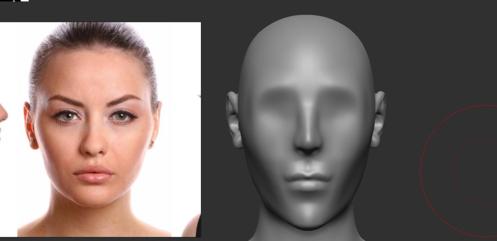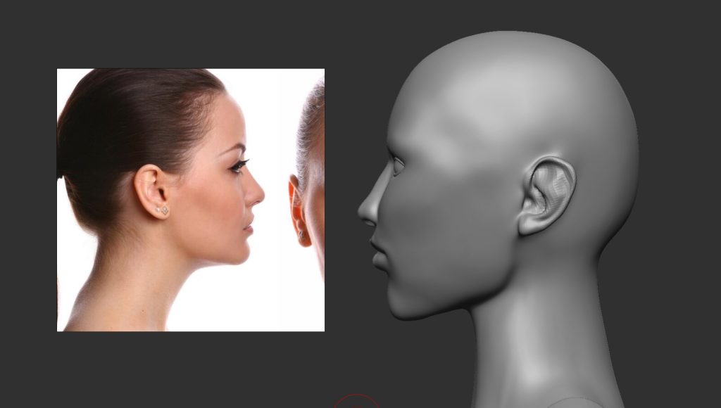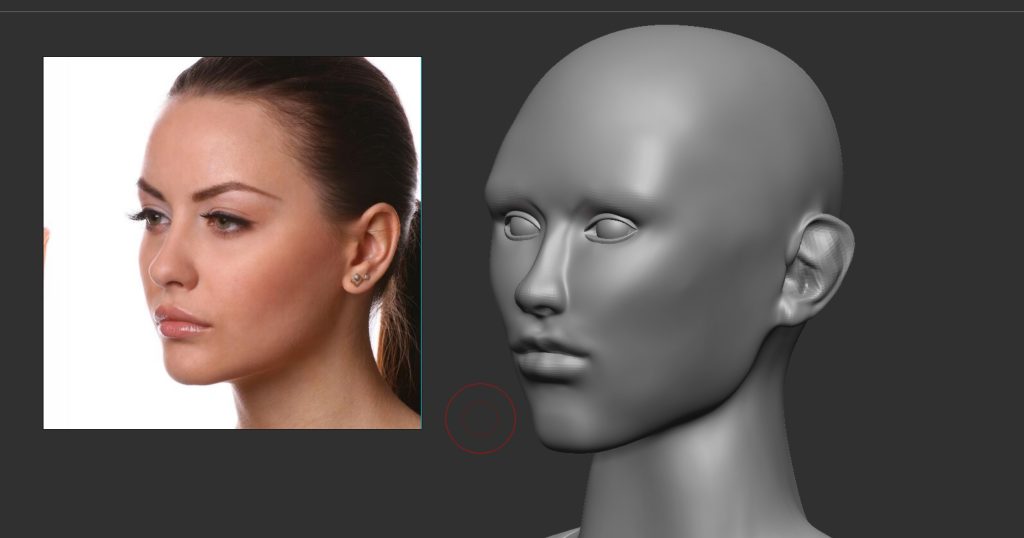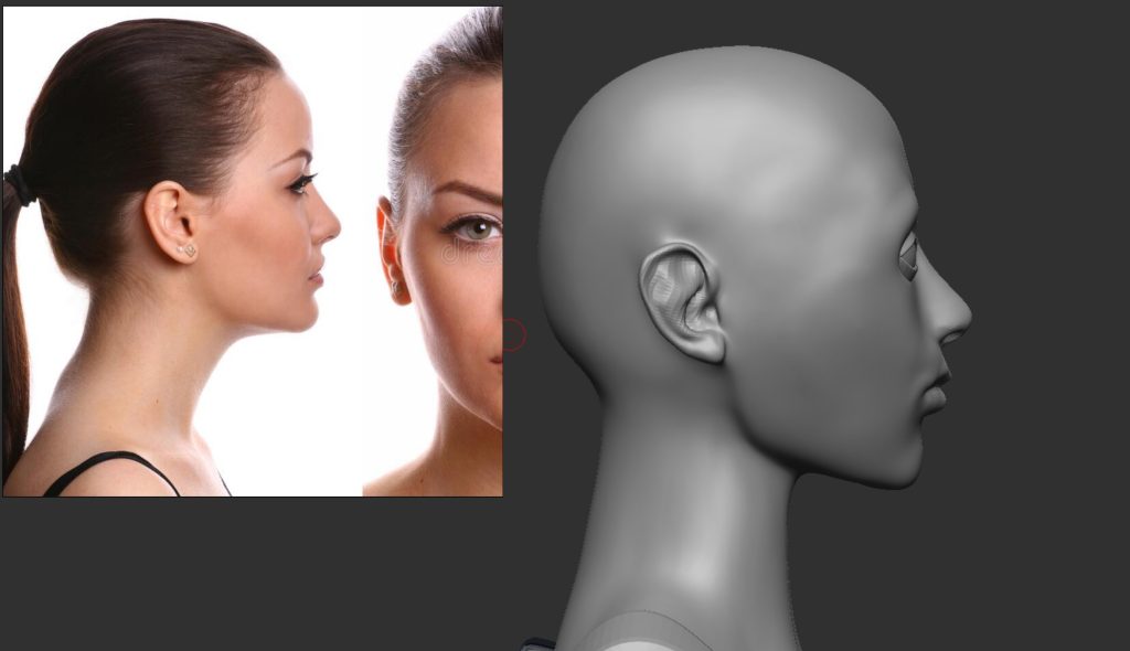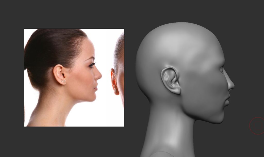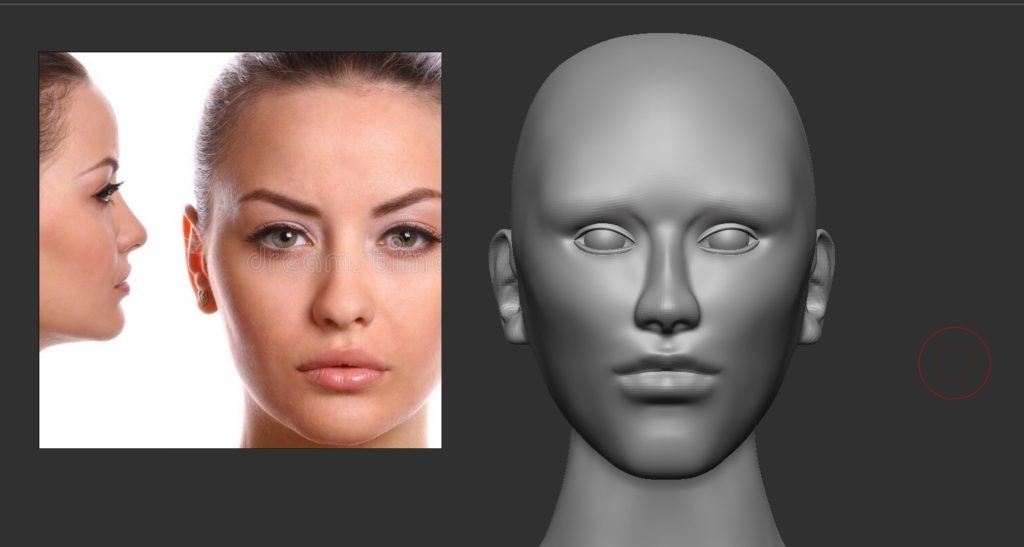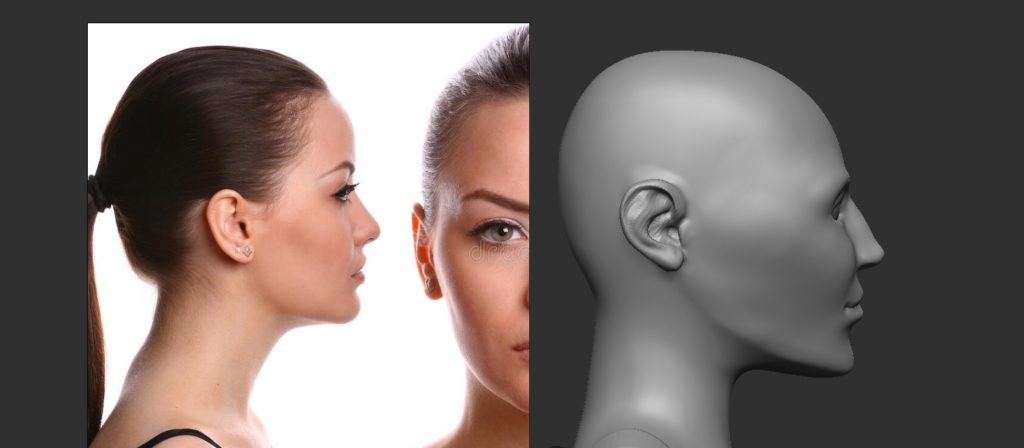 The face was the next thing i needed to do. This is something I have only ever tried once and that was during second year which went horribly. So this time i have done lots of research into methods for creating and blocking out the initial shape of the face and how reference image are a huge factor, so I first picked out a selection of front, side pictures of a female face which helped me build from my blocked out features.