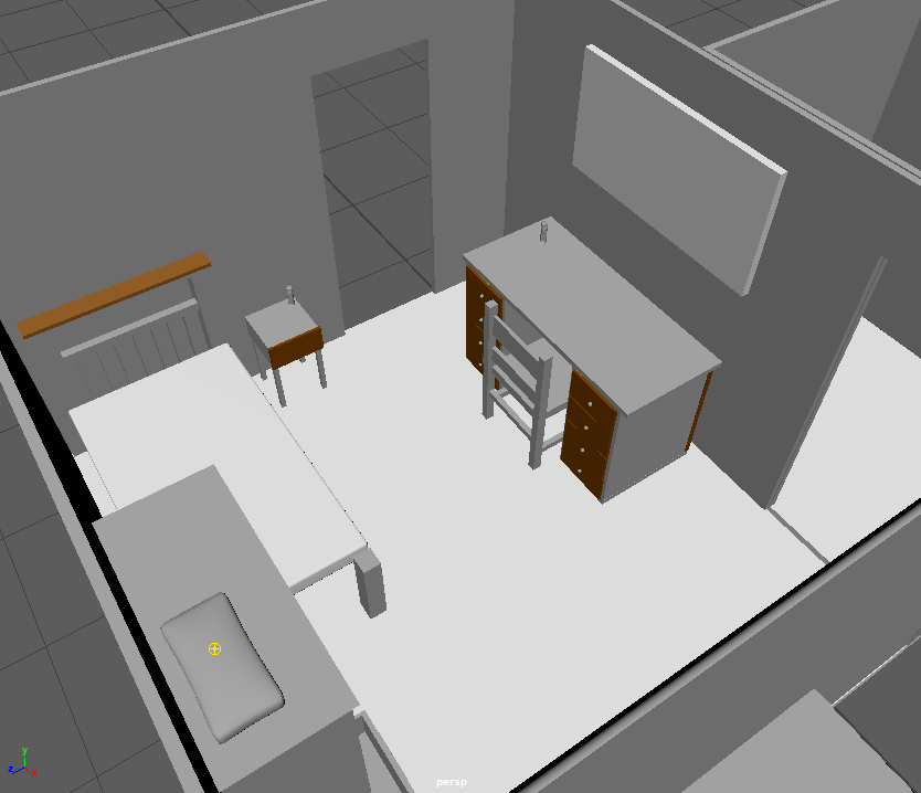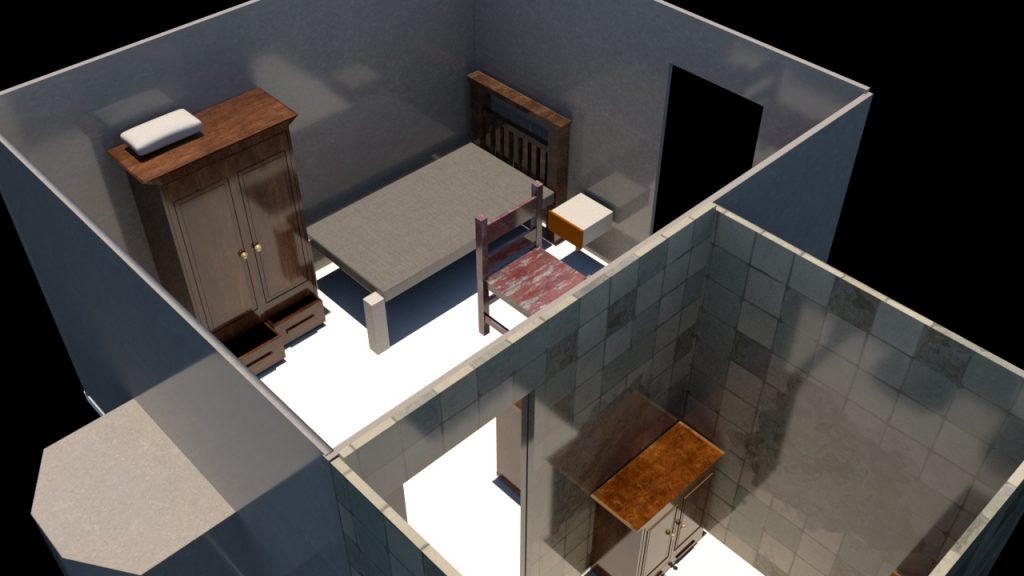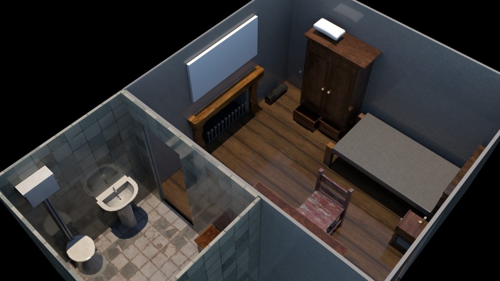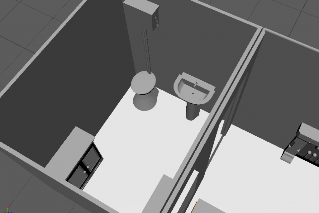 Once i was happy with the bedroom i moved onto the bathroom modelling a toilet, a sink and two cabinets.
