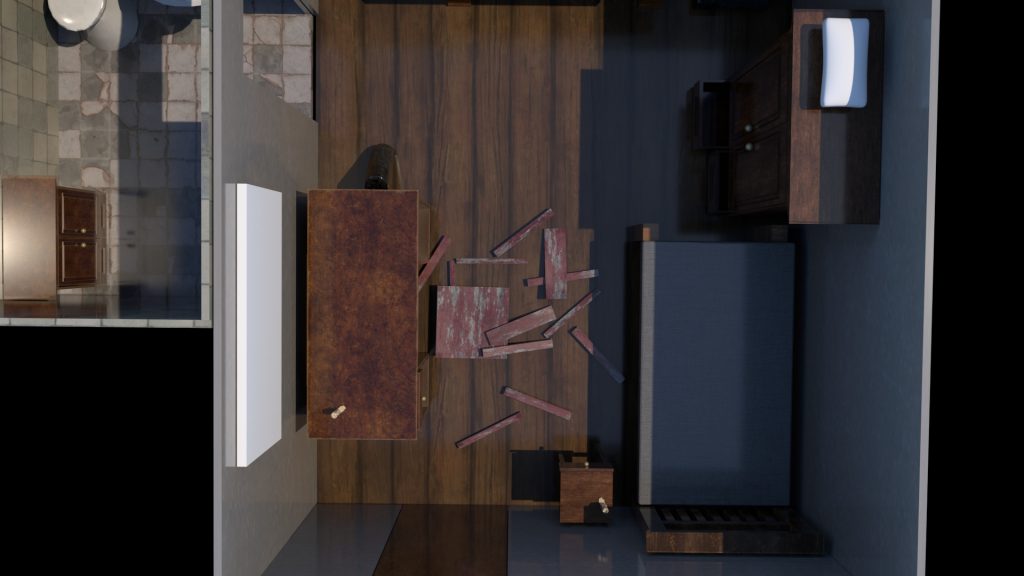 This week i worked on the render of the scene and just making sure it was up to scratch with how i wanted it to be. Here are some renders of the room.