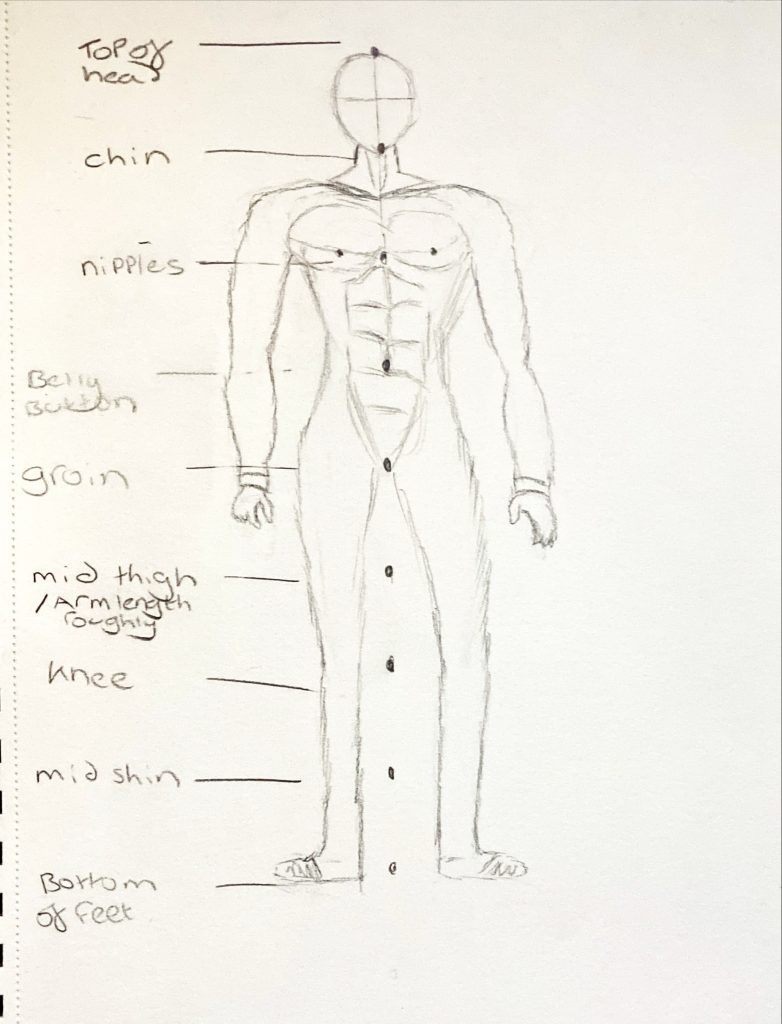 Once I had finished I used Office Lens to take a picture of the design. It isn’t the best quality as my drawing skills aren’t the best but I hope I can improve as time goes on. I also added more detail afterwards but I felt like it ruined the drawing and so I used the original picture i had taken. Some details aren’t accurate/aren’t sized correctly (like hands and feet)but that’s another thing I will improve on in the future.